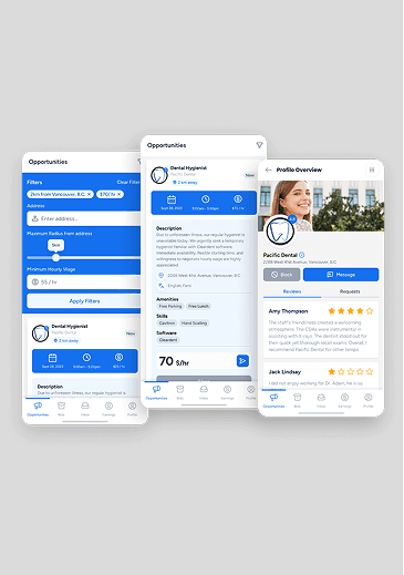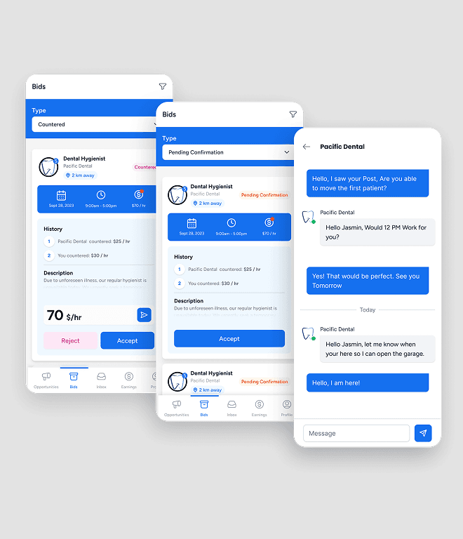 ForFordentaldentalprofessionals,professionals,TempbidTempbidprovidesprovidesananeasyeasywaywaytotofindfindflexible,flexible,short-termshort-termworkworkopportunities.opportunities.ByBysimplifyingsimplifyingnegotiationsnegotiationsandandscheduling,scheduling,thetheplatformplatformensuresensurestransparencytransparencyandandconvenience,convenience,makingmakingititeasiereasierforforbothbothclinicsclinicsandandprofessionalsprofessionalstotomanagemanagetemporarytemporarystaffing.staffing.